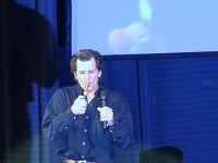 The actor was not on stage for long when fans began showering him with gifts. Keating received a pineapple and thanked the fan generously. He proceeded to take the micky out of the situation. "You've seen that episode when the crew figured out my favourite food! I know you all have computers and down loaded it so don't shake your heads no!" Enterprise had yet to hit European market with the exception of England. The series had come to the Continent via the internet and a thriving black market. The actor continued, "Well, I tell you all something. I HATE pineapple! Since I was small, I couldn't look at them. I'll give this to UNICEF! It's big enough to feed a whole family for an entire day!" He sat the pineapple beside the other gifts he received. "Since that episode, I've a fan that sends me gifts and takes very good care of me. It was in the TV Guide that I was sick for a few days. The next week this fan sent me a case of chicken soup, tissues and pineapple juice! This fan is very sweet. You know what so nice about these cons? I get to meet the people, who send me these gifts." With those words, Keating signed an additional autograph and gave the fan an European kiss.