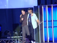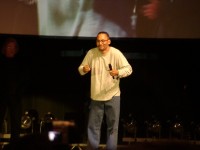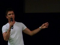 The trio of Robert Beltran, Robert Duncan McNeill and Garrett Wang hammed it up at the press conference. Friendly banter passed among the actors until a reporter asked them if they had anything to share. McNeill shouted, "Robert has an announcement!" Beltran passed his hand over his chin thoughtfully and replied, "Well, I've been sober for a year." McNeill and Wang patted Beltran's back in congratulations. McNeill went for the jugular, "First, time you've been sober at a con, hmm. This could be interesting." Beltran toke the offense, "I've been sober at cons before!" Wang and McNeill give him a 'don't-fool-us-look.' The reporters were left wondering whether Beltran had a drinking problem or not. The European press was too polite to make an inquiry for greater detail. Wang showed that he was knowledgeable about German teams playing American Rules Football, "Well, I'm working on a script, and I've been training for the Rhine Fire. I think if I work hard enough, I'll make quarterback this year." Wang's comment left him open for a score by McNeill, "The only thing you've been doing are weights and ice skating. That's not getting you into the Rhine Fire try the Cologne Haie (Sharks)!" Wang confessed, "Okay, works been a bit slow what have you been doing?!"